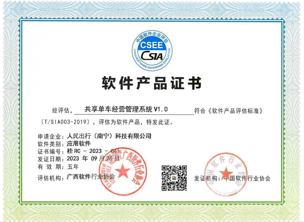 人民出行(南宁)科技有限公司是业内领先智慧城市运营商,是专注于智慧交通、新国标两轮电动自行车制造、新能源分布式应用以及新能源再生领域集成方案的倡导者和先行者,公司深耕数据领域,获批国家高新技术企业、国家鼓励的软件企业、广西专精特新企业、广西壮族自治区拟上市企业、广西科技型中小企业、广西瞪羚企业、知识产权优势企业等重大项目企业。公司于 2021 年率先进军新能源智慧慢行交通领域,启动“人民出行 5G 智能出行”项目,目前已在全国 140 多个城市投放运营超 68 万台电动自行车,市场占有率10.12%,正成为承载城市出行网络的重要基础和有益补充。